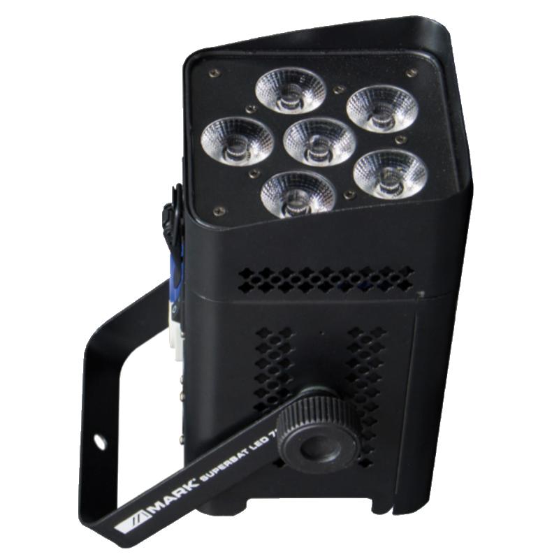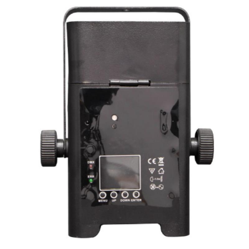 Foco Led para aplicaciones de iluminación arquitectural, con 6 LEDs (6 en 1) RGBWA+UV. Programas incorporados que incluyen dimerización, estrobo y cambio gradual. Es posible controlar la unidad con un mando a distancia. Incorpora una batería recargable para su uso de manera autónoma.