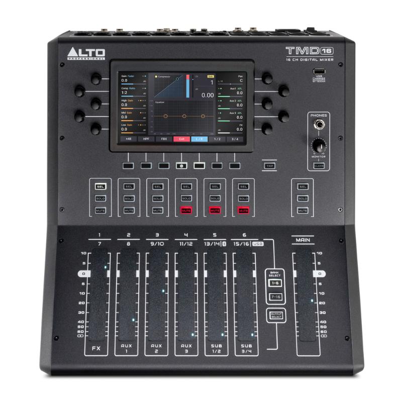 - FX con 16 reverbs, retardos y chorus. El motor de mezcla digital ofrece presets de escenas, direccionamiento avanzado, efectos de reverb/delay y EQ y compresores/limitadores en todas las entradas y salidas.