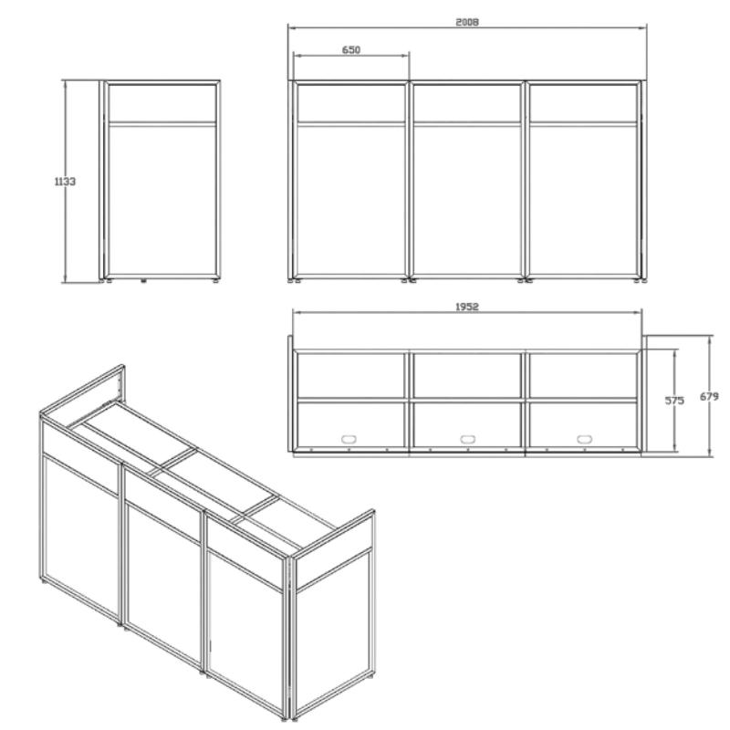 Cabina de DJ plegable de 2 metros de ancho con escritorio de DJ perforado.