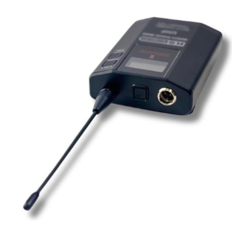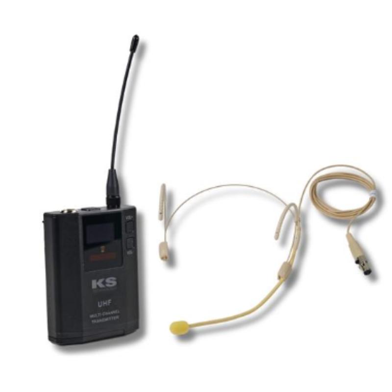 Transmisor inalámbrico de petaca con micrófono de diadema. UHF 640-690 MHz