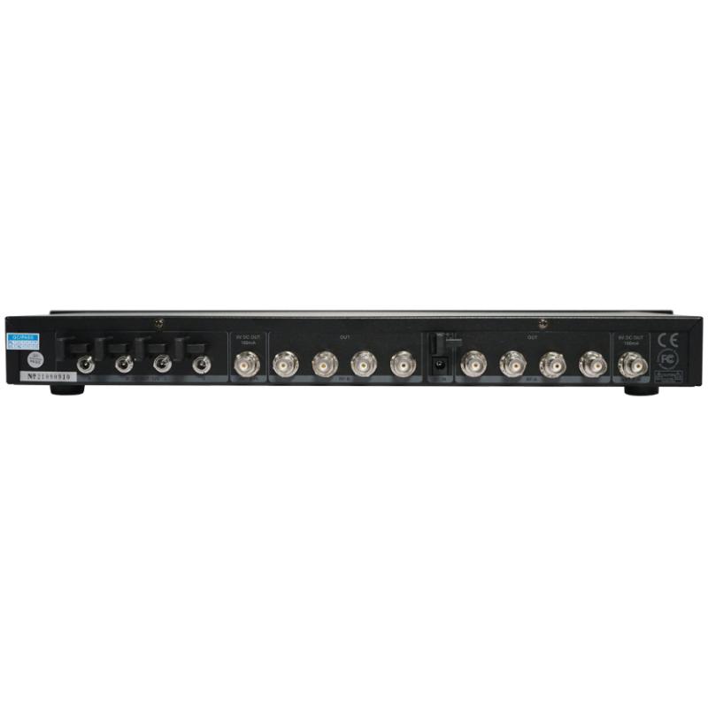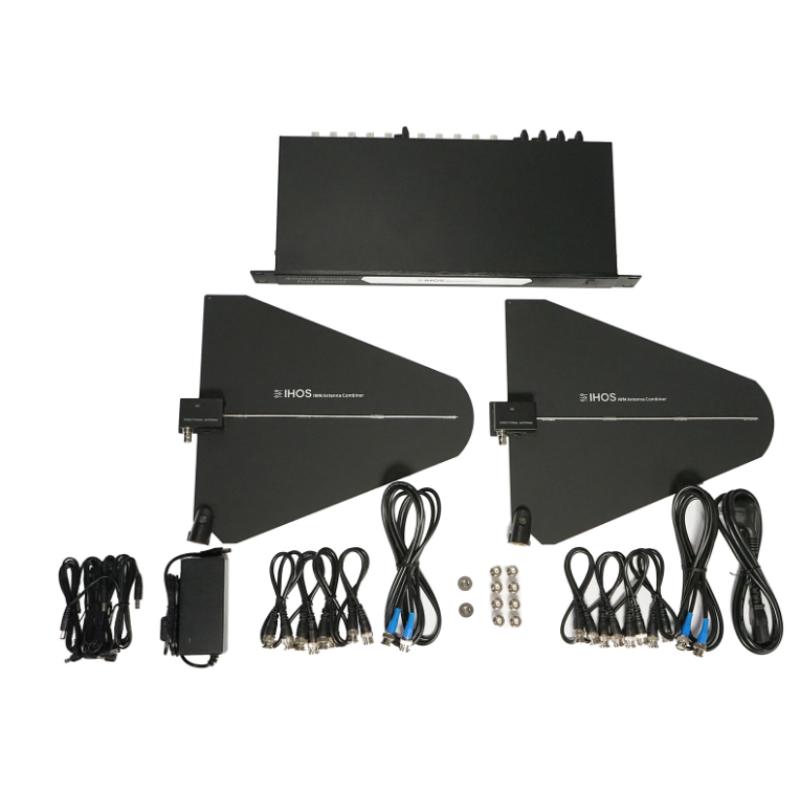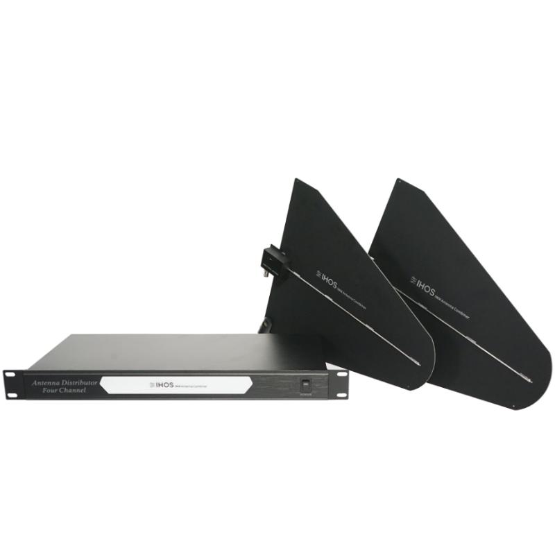 Distribuidor de antena inalámbrica de 4 canales, frecuencia de operación 500Mhz-999Mhz, antenas LPDA, ganancia máxima 10dB, voltaje de trabajo 8VDC.