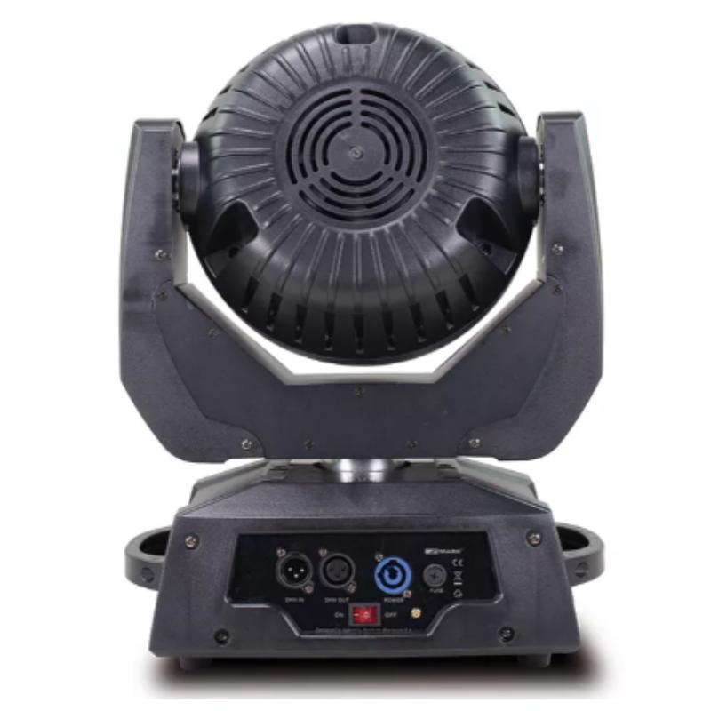 Cabeza móvil que con 36 LEDs RGBW 4 en 1 de 10W cada uno. Motores de alta calidad que ofrecen movimientos suaves en 8 y 16 bits con amplio desplazamiento. Interfaz de configuración con una pantalla con toda la información y botones para navegar a través de los menús, seleccionando parámetros tales como: Pan / Tilt reverse, modos de uso, modos de canales DMX o función de reinicio. Modo DMX (16 canales) con movimientos básicos, dimerización de los colores básicos (con función de mezcla), zoom y función estrobo.